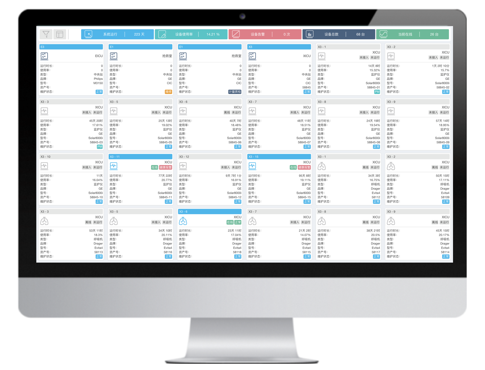 多臺不同品牌的有創(chuàng)呼吸機聯(lián)網(wǎng),并通過大屏實時集中呈現(xiàn)治療預設參數(shù)和監(jiān)測參數(shù),實現(xiàn)多臺集中監(jiān)測、集中管理和數(shù)據(jù)存儲。